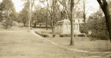 Elm Park has been home to the Memorial Day Water Ceremony for at least 45 years. Dee Dively, Past Commander of the Worcester Veterans’ Council, read an article from the Telegram & Gazette from 1980 as part of the ceremony, before flowers were thrown into Lincoln Pond from Myra Kraft Bridge.